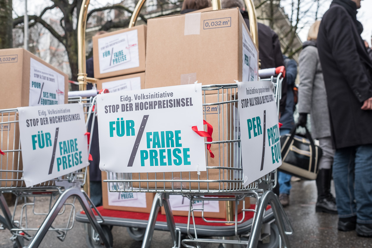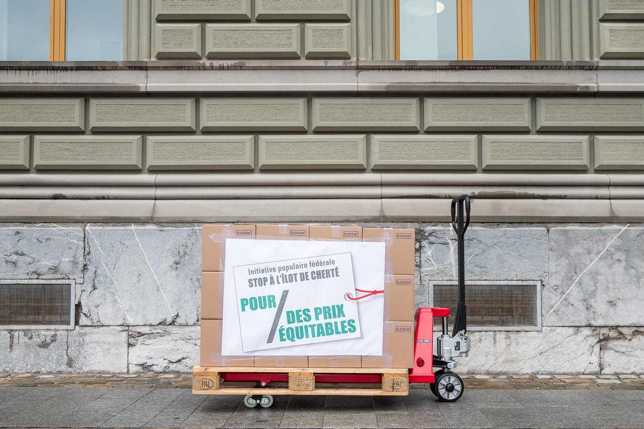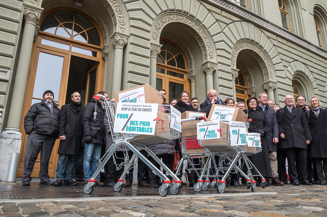 L’initiative populaire fédérale «Stop à l’îlot de cherté – pour des prix équitables (initiative pour des prix équitables)» a été déposée le 12 décembre 2017 munie de 107’908 signatures. Cette initiative populaire permettra d’introduire des mesures légales efficaces afin de combattre les prix trop élevés en Suisse.