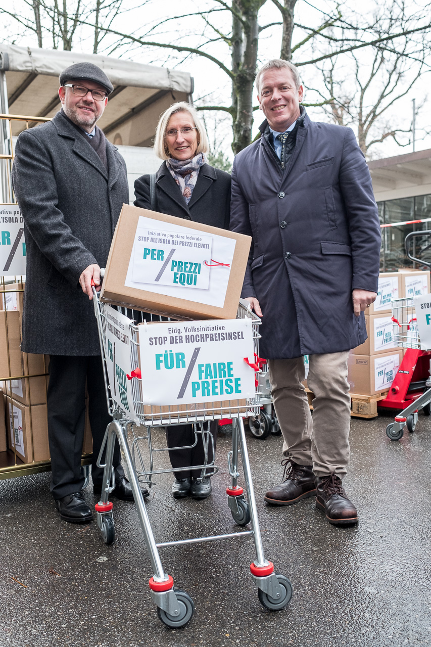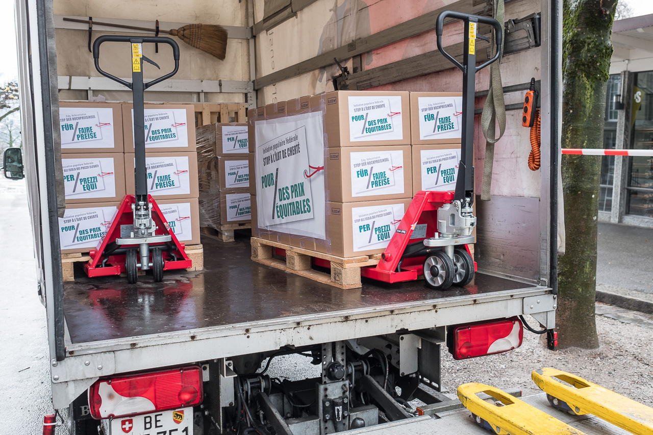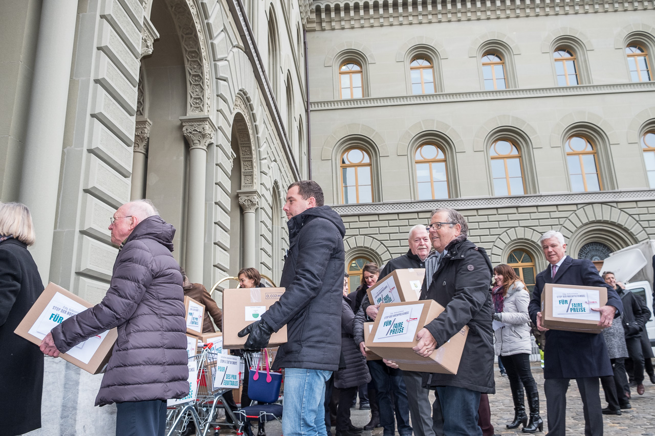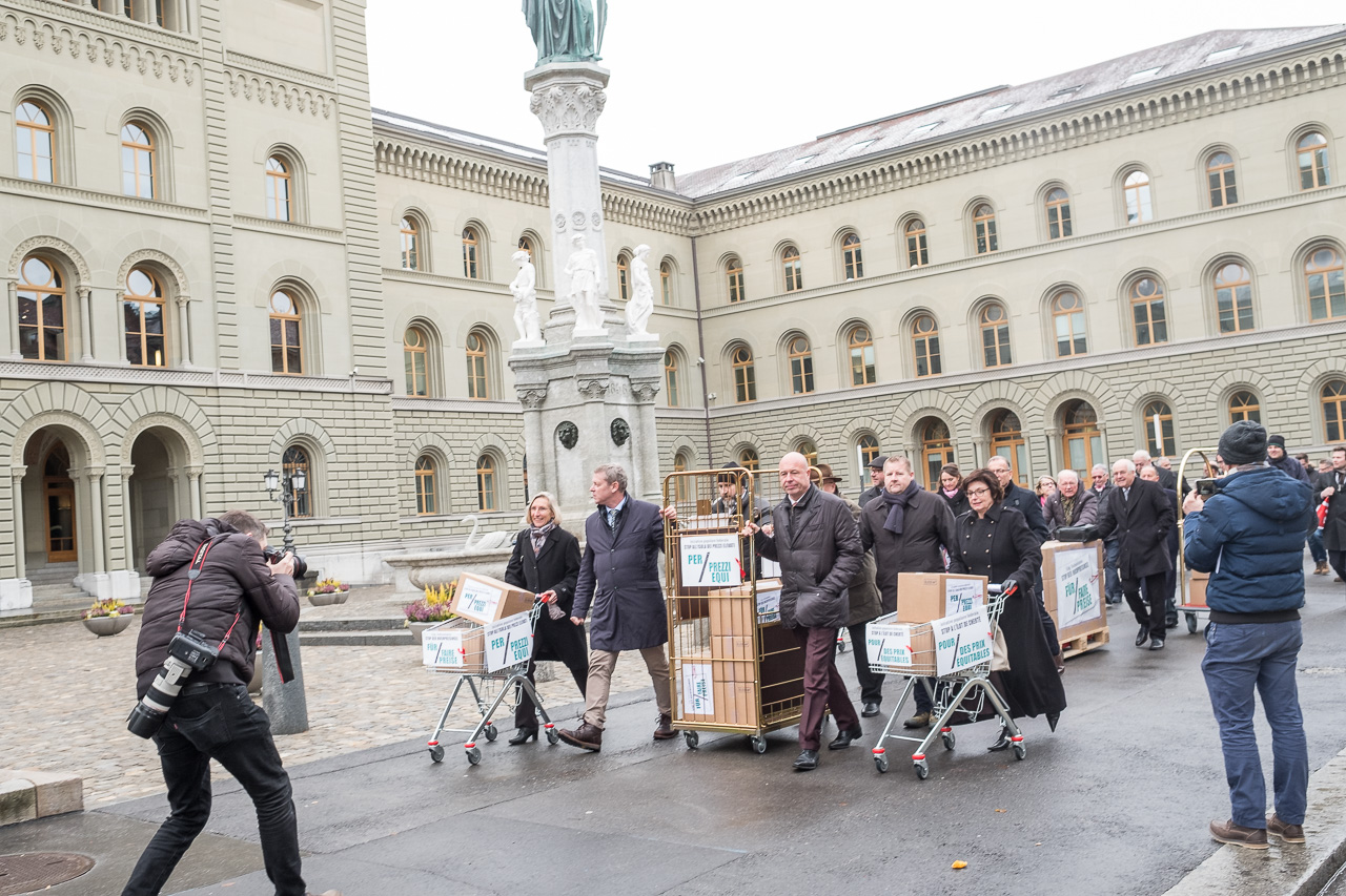 L’initiative populaire fédérale «Stop à l’îlot de cherté – pour des prix équitables (initiative pour des prix équitables)» a été déposée le 12 décembre 2017 munie de 107’908 signatures. Cette initiative populaire permettra d’introduire des mesures légales efficaces afin de combattre les prix trop élevés en Suisse.